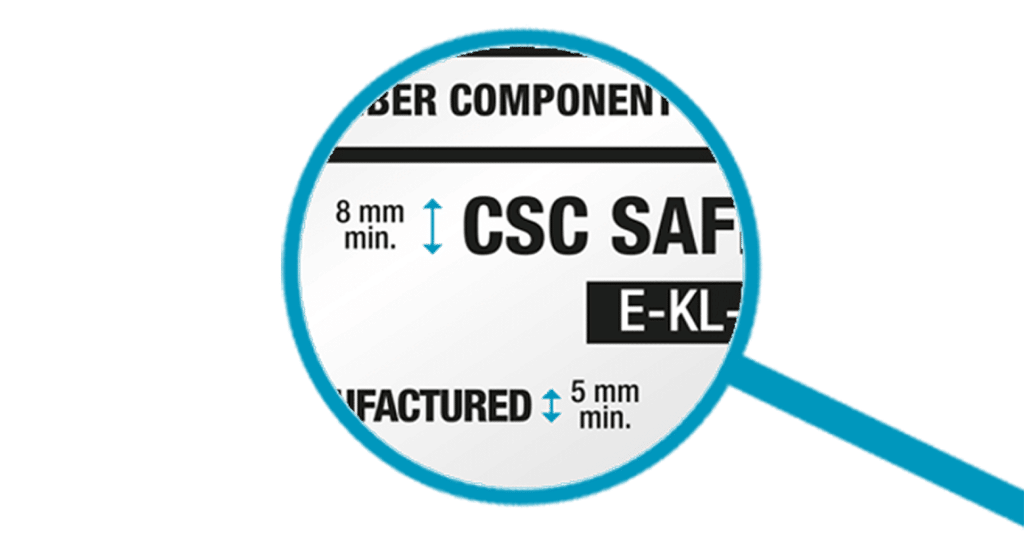 Each CSC plate must contain a certain level of information, in either English or French. The words “CSC SAFETY APPROVAL” are prominent on the plate, along with the country of approval and the approval reference.