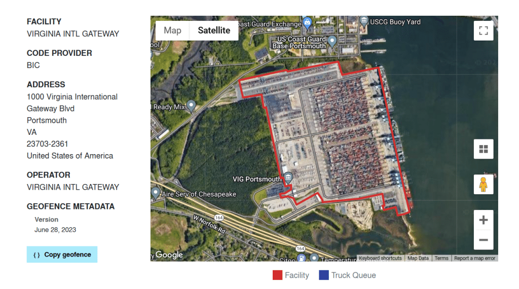 Container facilities can directly contribute their own geofences, as is preferred, but we also accept geofences from:
